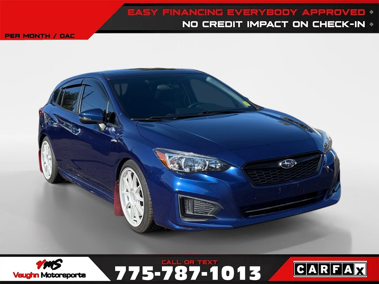 Get ready to zip around town in this sleek 2018 Subaru Impreza! With a sporty exterior design and a comfortable interior, this car is perfect for both daily commutes and weekend adventures. The impressive cargo volume means you can easily load up all your gear, whether you're headed to the beach or the mountains. This Subaru Impreza offers great fuel economy, so you can spend less time at the pump and more time on the road. With roomy seating for up to five passengers, everyone can come along for the ride. The powerful engine will make you feel like you're in the driver's seat of a racecar, while the smooth handling and all-wheel drive system provide a safe and secure driving experience. Plus, the blue exterior color is sure to turn heads as you cruise by. And don't forget, a carfax report is available for your peace of mind. Don't miss out on the chance to own this fantastic Subaru Impreza - it's ready and waiting for you to hit the road in style!
