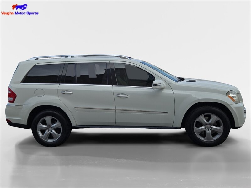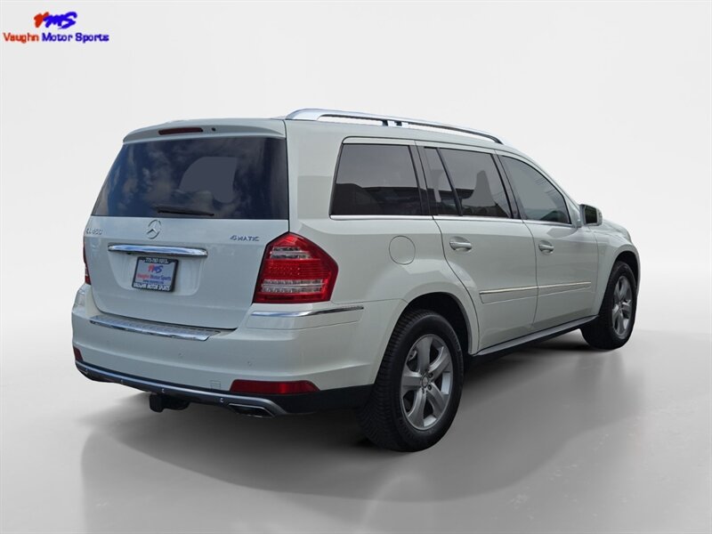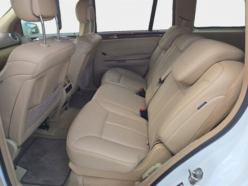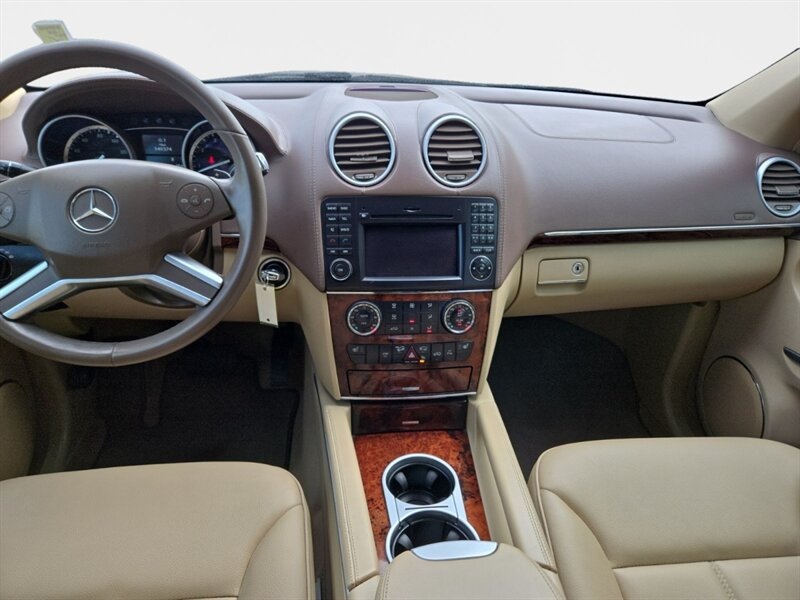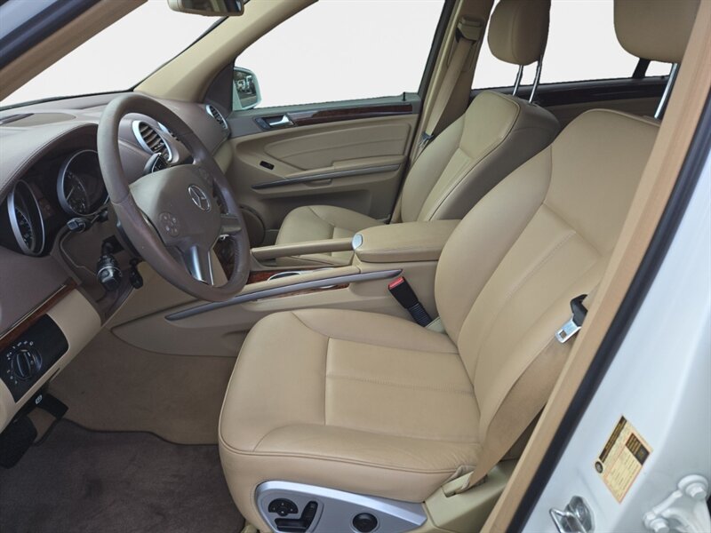 2011 Mercedes-Benz GL 450 4MATIC in Diamond White Metallic with Tan leather interior. Powered by the factory 4.7L V8 (335 hp, 339 lb-ft) paired with Mercedes’ 7-speed automatic transmission and full-time 4MATIC all-wheel drive. Factory equipment includes seating for seven with third-row seats, leather seating surfaces, power-adjustable front seats with memory, multi-zone automatic climate control, power windows/locks/mirrors and a power liftgate. Infotainment and convenience features include Mercedes audio/phone integration with steering-wheel controls and a premium sound system. Safety systems are factory-standard Mercedes items such as anti-lock brakes, stability and traction control and multiple airbags. This vehicle has under 150,000 miles (averaging less than 10,000 miles/year), is in excellent overall condition, returns about 13 MPG city / 18 MPG highway, and has a clean CARFAX.