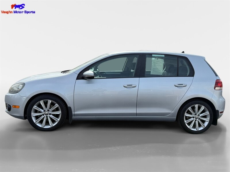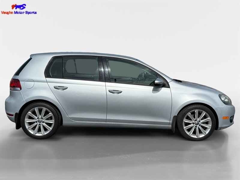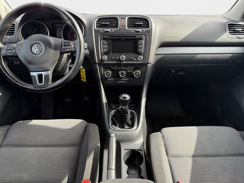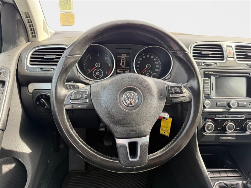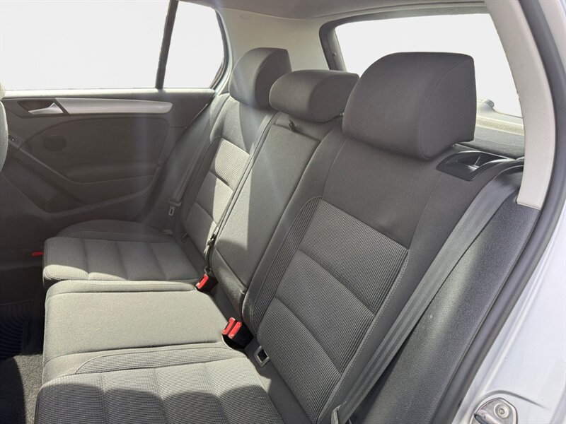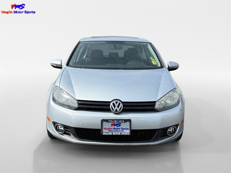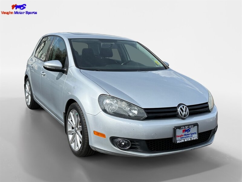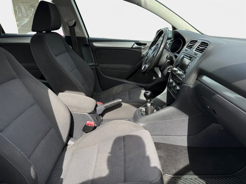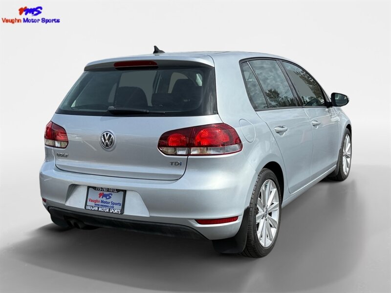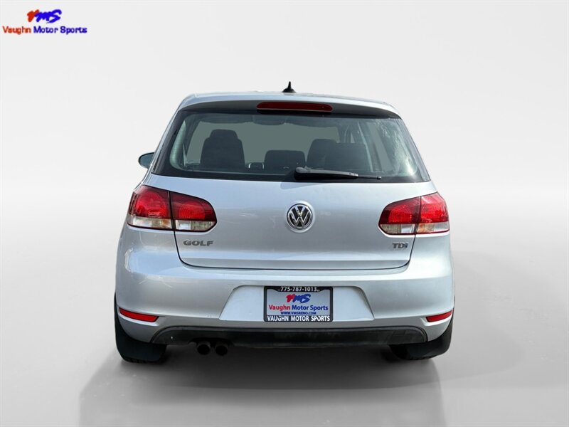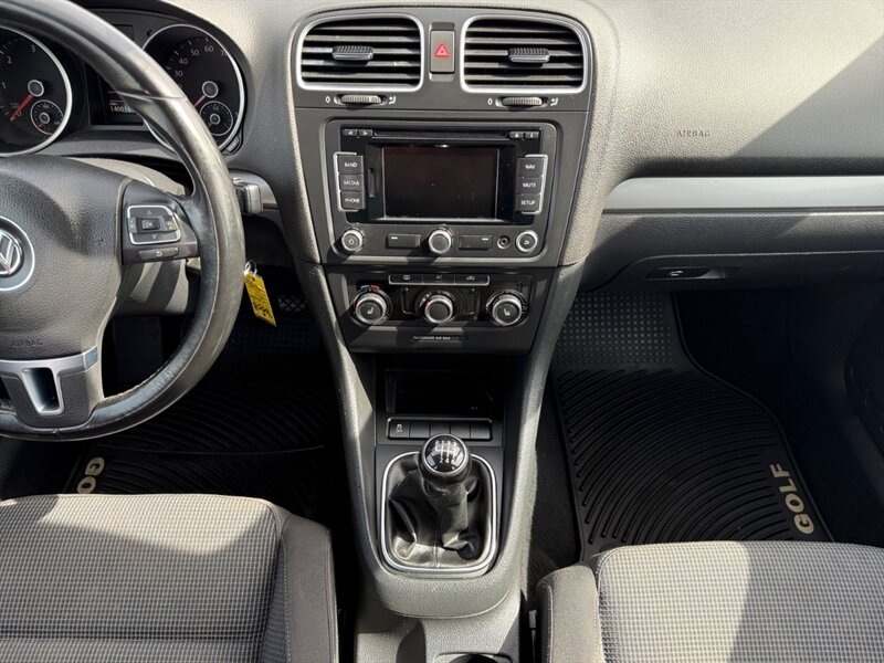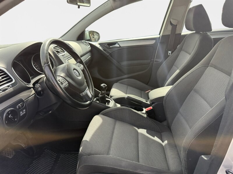 2012 Volkswagen Golf TDI with the 2.0L diesel turbo I4 producing 140 hp and 236 lb-ft of torque. Finished in Reflex Silver Metallic with a Gray cloth interior, seating for five and a 60/40 split-folding rear seat. Factory equipment includes air conditioning, power windows and locks, remote keyless entry, cruise control, AM/FM/CD/MP3 audio with auxiliary input and steering-wheel controls, tilt/telescoping steering wheel, and basic convenience trim. Standard safety features include ABS, stability and traction control, front and side-impact airbags with side-curtain protection, and tire-pressure monitoring. Below 140,000 miles (averaging under 10,000 miles/year), EPA-rated 30 MPG city / 42 MPG highway, excellent overall condition and a clean CARFAX.