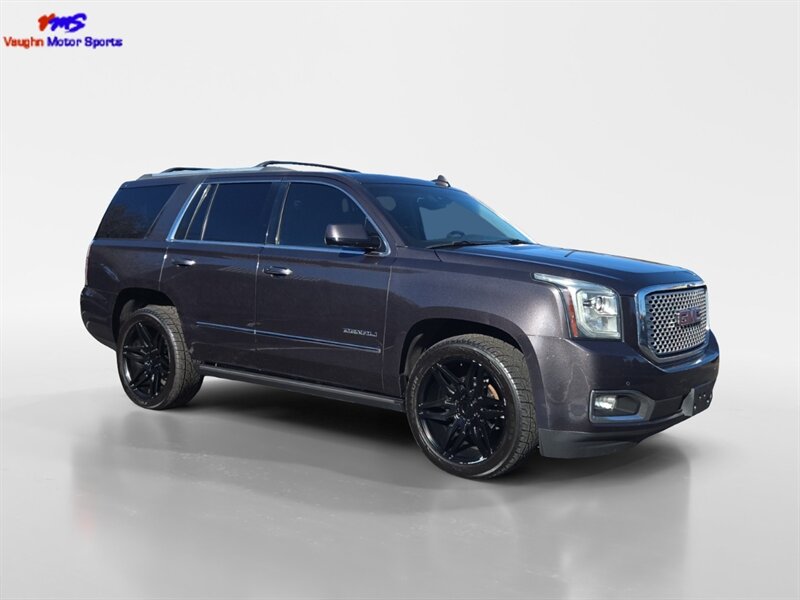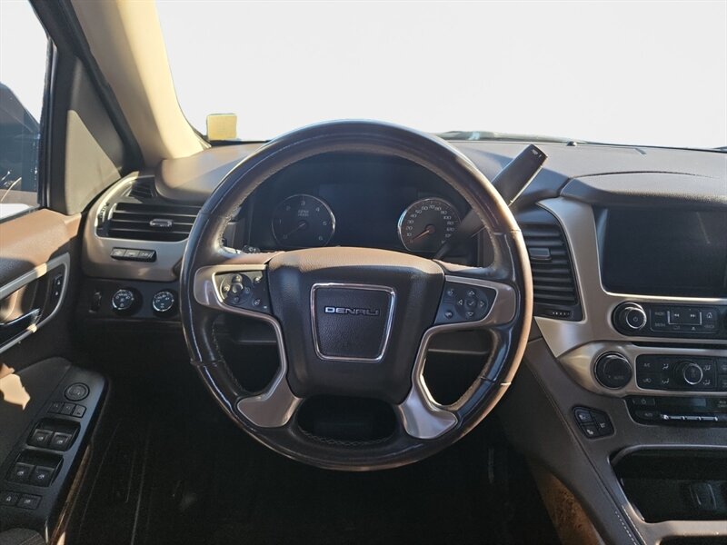 Introducing the 2015 GMC Yukon Denali, a powerful and sophisticated SUV that combines luxury with performance. Powered by an EcoTec3 6.2L V8 engine, this vehicle delivers an impressive 420 horsepower and 460 ft-lbs of torque, ensuring a robust driving experience. The exterior features a striking Light Steel Gray Metallic finish, while the interior offers a spacious and comfortable environment designed for both driver and passengers.