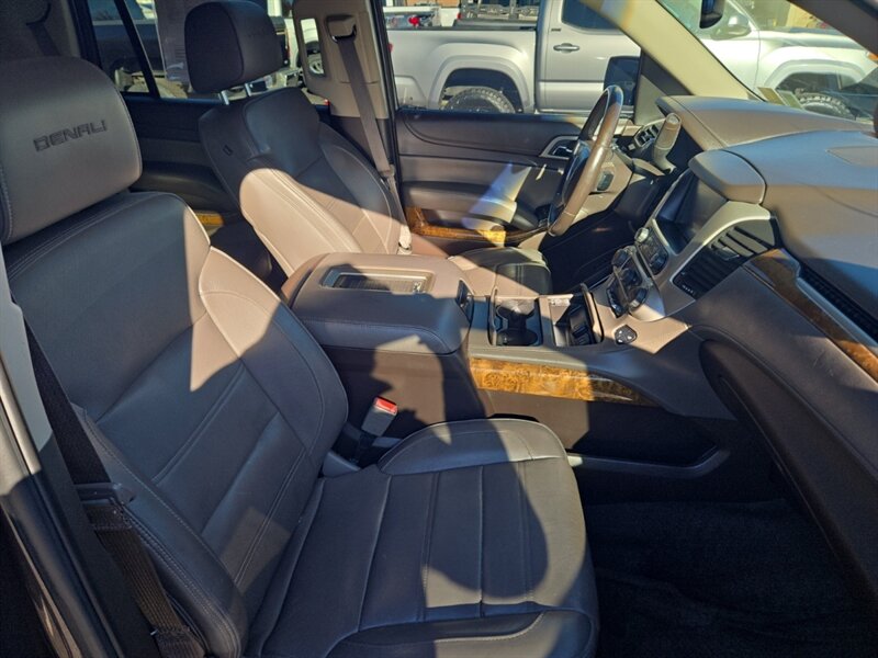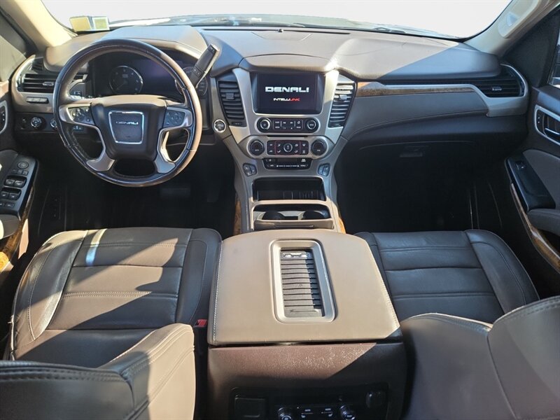 Standard features include a premium audio system, leather upholstery, heated and ventilated front seats, and a rearview camera for enhanced visibility. The Yukon Denali is equipped with advanced technology, including an infotainment system with navigation, Bluetooth connectivity, and multiple USB ports, ensuring connectivity on the go. Safety features such as forward collision alert, lane departure warning, and parking assist provide added peace of mind.