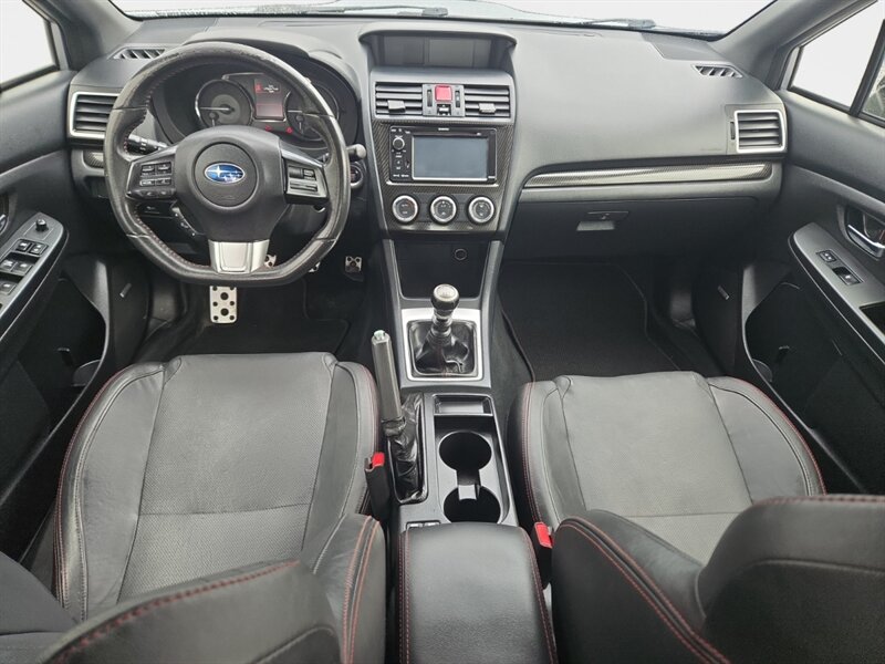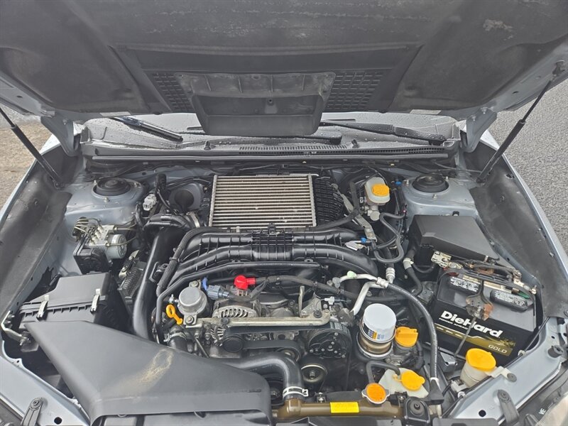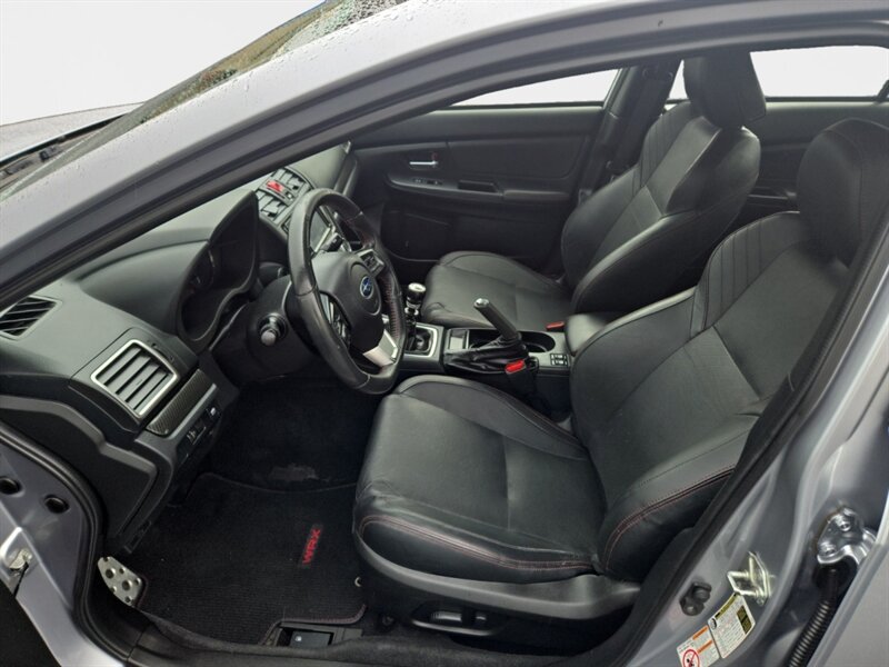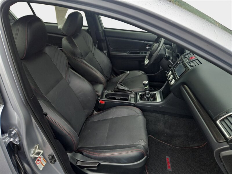Factory features include Subaru Symmetrical All-Wheel Drive, leather-appointed heated front seats and power driver’s seat, 18" alloy wheels, HID headlights with fog lamps, touchscreen infotainment with Bluetooth/USB and steering-wheel controls, keyless access with push-button start, automatic climate control, rearview camera, ABS with traction and stability control, and a full complement of airbags. Basically, rally pedigree with civilization-friendly comforts — like a stunt driver who drinks decaf.