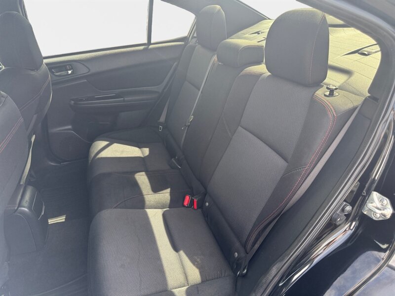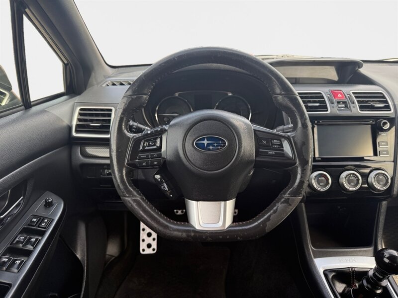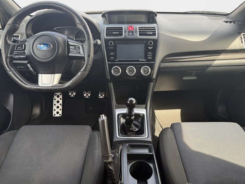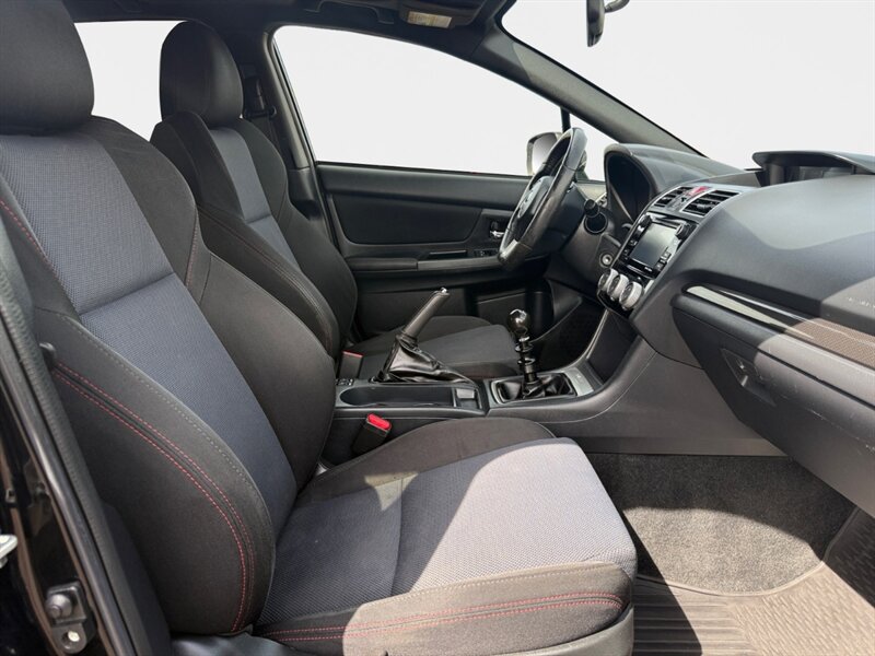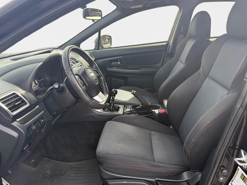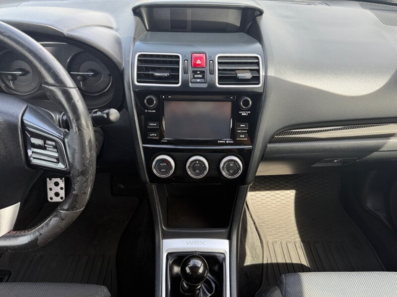 2016 Subaru WRX Premium in Crystal Black Silica, powered by a 2.0L turbocharged H4 producing 268 hp and 258 lb-ft of torque. Factory-equipped with Symmetrical All-Wheel Drive, sport-tuned suspension, rear trunk spoiler, alloy wheels, fog lights, power windows/locks/mirrors, heated front seats, leather-wrapped steering wheel and shift knob, steering-wheel audio controls, Bluetooth hands-free/audio, USB/iPod input and AM/FM audio, cruise control, ABS with traction and stability control, and a full complement of airbags. Interior information not provided. EPA-rated 20 MPG city / 27 MPG highway. Vehicle is in excellent overall condition and has a clean CARFAX.