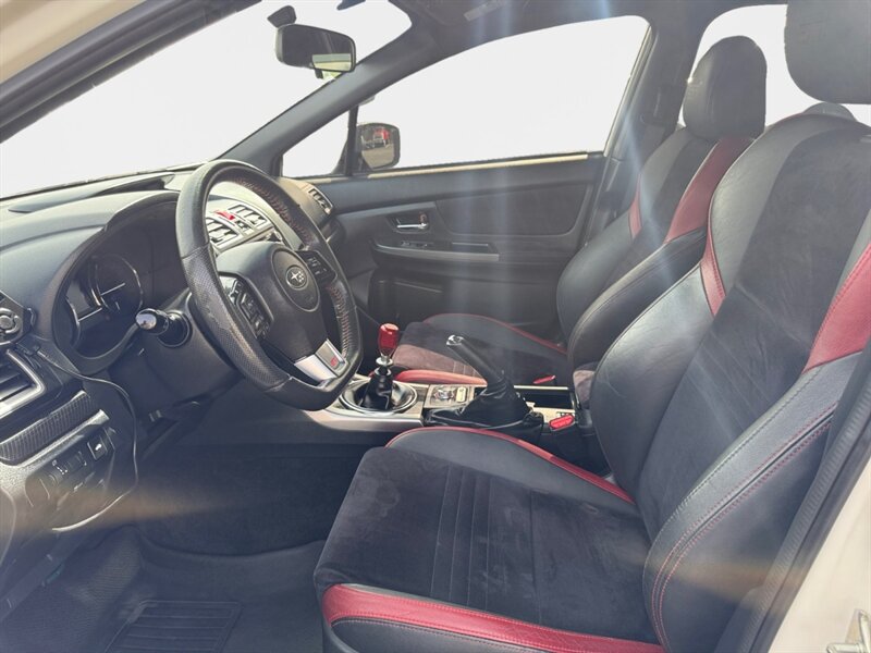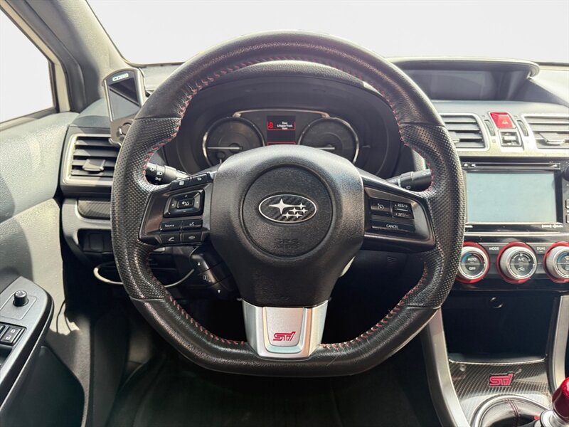 2016 Subaru WRX STI — 2.5L Turbo H4, 305 hp / 290 lb-ft, Crystal White Pearl, under 91,000 miles (avg <9,000/yr), 17 city / 23 highway, excellent condition with a clean CARFAX. Factory equipment includes a 6-speed manual, Symmetrical AWD with Driver Controlled Center Differential (DCCD) and Active Torque Vectoring, Brembo performance brakes, sport-tuned suspension and short-throw STI shifter, Recaro front sport seats, 18" alloy wheels, HID projector headlights and fog lamps, Subaru STARLINK infotainment with Bluetooth and rearview camera, stability/traction control, aluminum sport pedals and keyless access/start — interior color/details available on request. This STI is razor-sharp and ready to attack the road — no compromises.