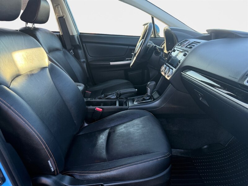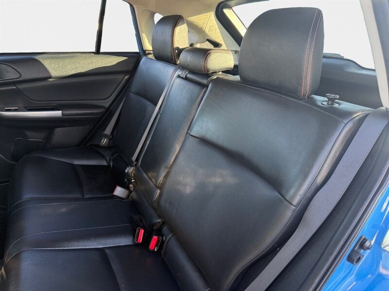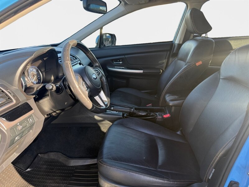 2016 Subaru XV Crosstrek Limited in blue with black leather interior — excellent overall condition and a clean CARFAX. Factory equipment includes a 2.0L horizontally opposed Boxer engine mated to Subaru’s Lineartronic CVT and Symmetrical All-Wheel Drive, 17" alloy wheels, roof rails and fog lamps. Interior features from the factory include leather-trimmed seats with heated front seats and a power-adjustable driver’s seat, automatic climate control, 60/40 split folding rear seat, keyless access with push-button start, steering-wheel audio and cruise controls, and Subaru StarLink infotainment with Bluetooth and USB connectivity plus a rearview camera. Standard safety and convenience items include ABS, stability and traction control, front side and curtain airbags, and a tire pressure monitoring system.