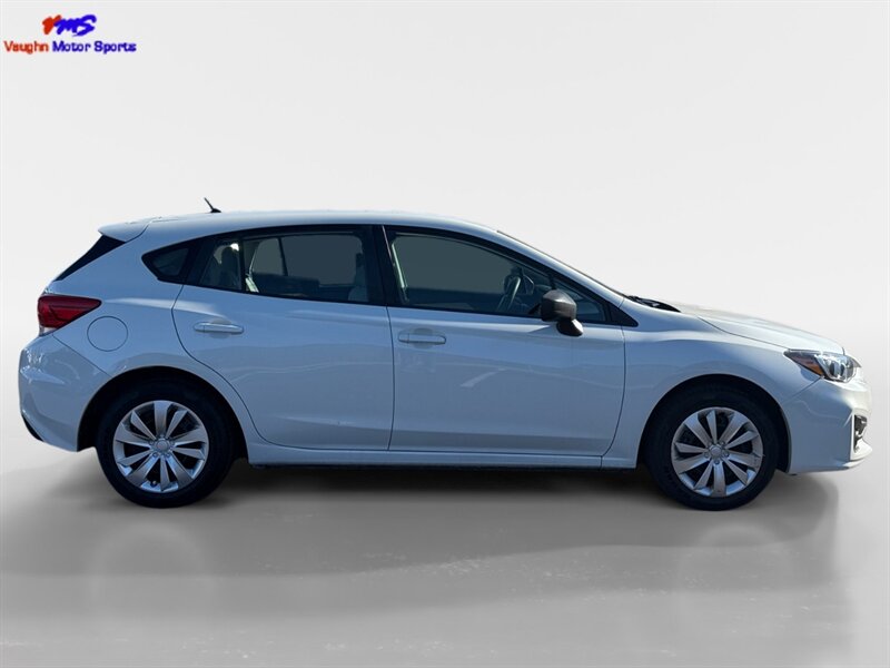 2017 Subaru Impreza 2.0i in Crystal White Pearl with Black cloth interior. Factory-standard equipment includes Subaru’s Symmetrical All-Wheel Drive, a 2.0L horizontally opposed (Boxer) 4-cylinder engine, seating for five with a 60/40 split-folding rear seat, power windows and locks, remote keyless entry, air conditioning, tilt/telescopic steering column, Bluetooth and USB audio inputs with steering-wheel audio controls, AM/FM audio, and a suite of active and passive safety features (ABS, traction and stability control, front/side/curtain airbags). This vehicle has excellent overall condition, a clean CARFAX, and below 81,000 miles (averaging under 9,000 miles/year); fuel economy is rated at 24 MPG city and 31 MPG highway.