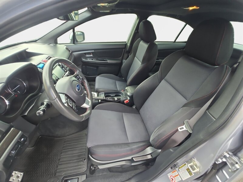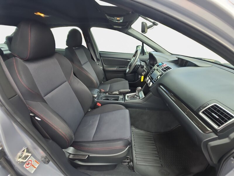2017 Subaru WRX Premium in Ice Silver Metallic with Carbon Black Checkered cloth interior. Powered by a 2.0L turbocharged H4 engine producing 268 hp and 258 lb-ft of torque and paired to Subaru’s performance-oriented drivetrain and Symmetrical All-Wheel Drive. Factory equipment includes sport-tuned suspension, 17-inch alloy wheels, front fog lights, power mirrors and windows, remote keyless entry, cruise control, supportive sport cloth seats, and a Subaru STARLINK multimedia system with Bluetooth and USB connectivity and steering-wheel audio controls. Standard safety features include multiple airbags, ABS with brake assist, stability and traction control, and a rearview camera. This vehicle has below 95,000 miles (averaging under 10,000 miles per year), is in excellent overall condition, gets an EPA-rated 18 MPG city and 24 MPG highway, and comes with a clean CARFAX report.