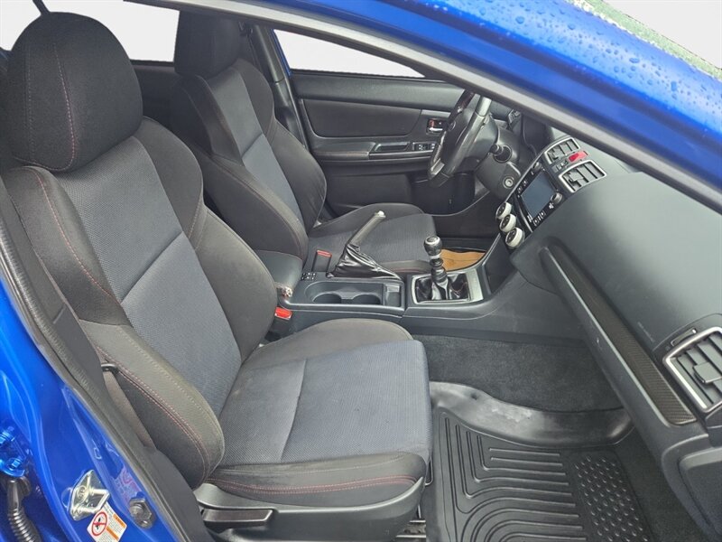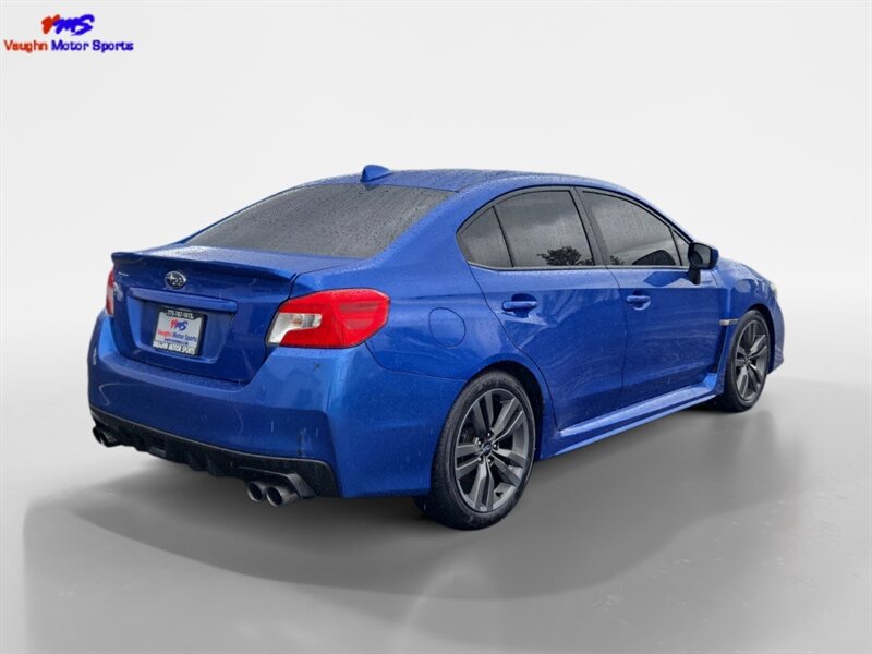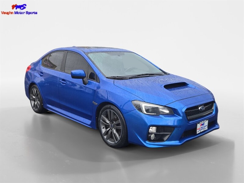 2017 Subaru WRX Premium in Lapis Blue Pearl with Carbon Black Checkered cloth interior. Powered by a 2.0L turbocharged H4 engine producing 268 hp and 258 ft-lbs of torque, and factory-equipped with Symmetrical All-Wheel Drive, a sport-tuned chassis, 6-speed manual transmission, alloy wheels, Subaru Starlink infotainment with Bluetooth and USB connectivity, rearview camera, power windows/locks, cruise control, and standard safety systems including multiple airbags, traction and stability control. Excellent overall condition with a clean CARFAX, under 81,000 miles (averaging less than 9,000 miles/year), EPA ratings of 20 MPG city / 27 MPG highway, and an asking price below Kelley Blue Book value.