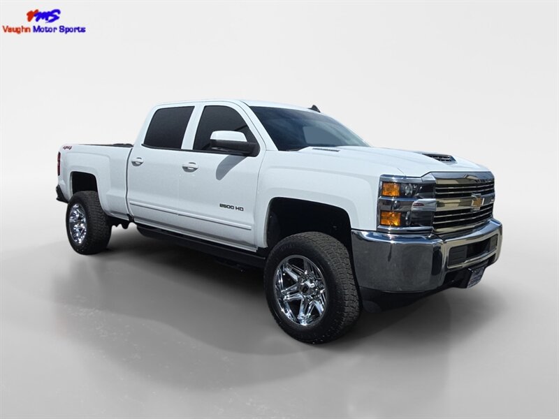 2018 Chevrolet Silverado 2500HD LT in Summit White with Dark Ash with Jet Black Accents cloth seating. Powered by the Duramax 6.6L Turbo-Diesel V8 (445 hp, 910 lb-ft) mated to an Allison heavy-duty automatic transmission, this truck is factory-built for towing and heavy work with reinforced cooling and suspension components.