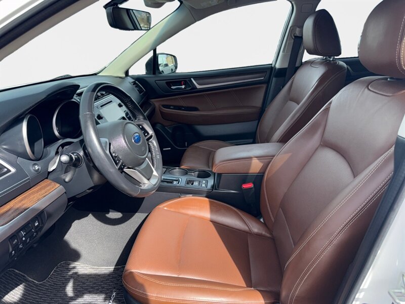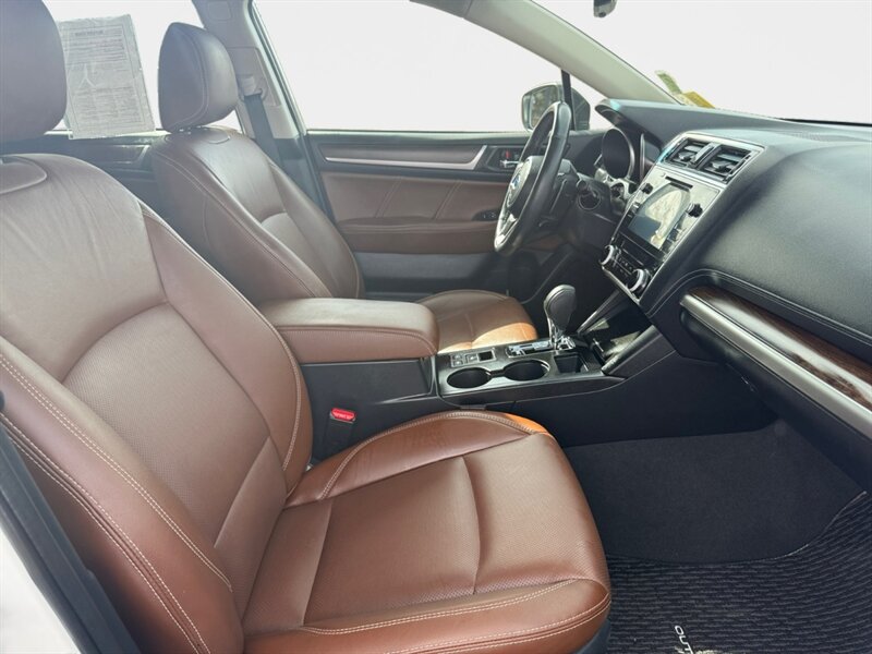 Crystal White Pearl on the outside, cozy Java Brown leather on the inside, and enough boxer-powered attitude under the hood to make grocery runs feel like mild adventures — meet the 2018 Subaru Outback 3.6R Touring. Powered by a 3.6L H6 producing 256 hp and 247 ft-lbs of torque mated to a smooth 6-speed automatic with Subaru’s Symmetrical All-Wheel Drive, it gets a practical 20 MPG city / 27 MPG highway. Factory-equipped with leather-trimmed heated front seats and power adjustments, dual-zone automatic climate control, panoramic power moonroof, keyless access with push-button start, STARLINK infotainment with Bluetooth (and navigation capability), rearview camera, roof rails, and full safety/traction systems for confident all-weather driving. Excellent overall condition with a clean CARFAX — dependable, comfortable, and just the right amount of “I’ve got plans.”