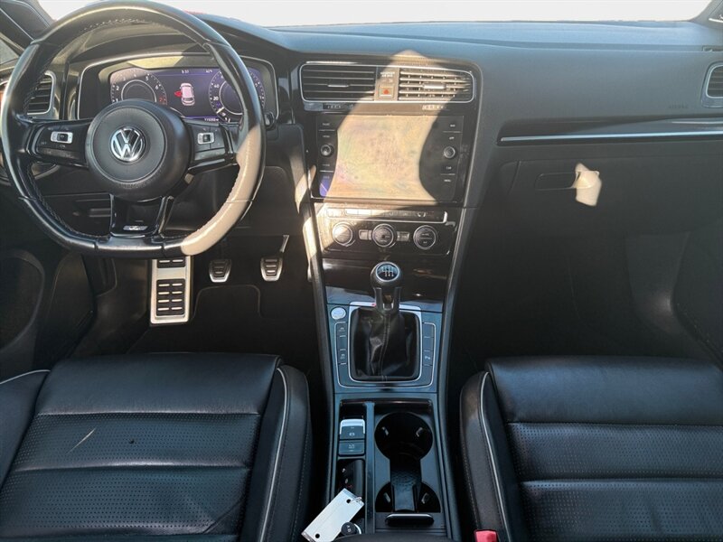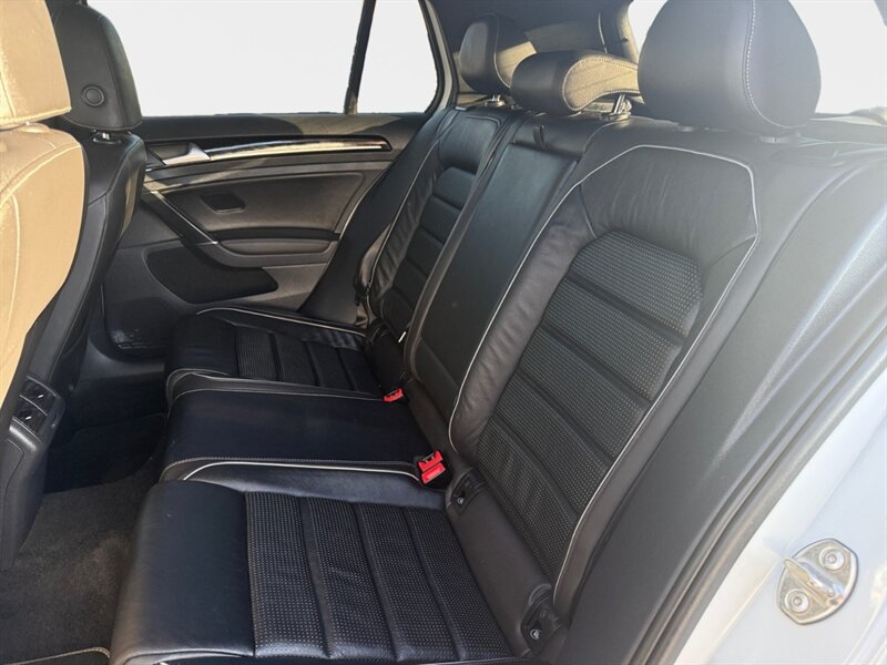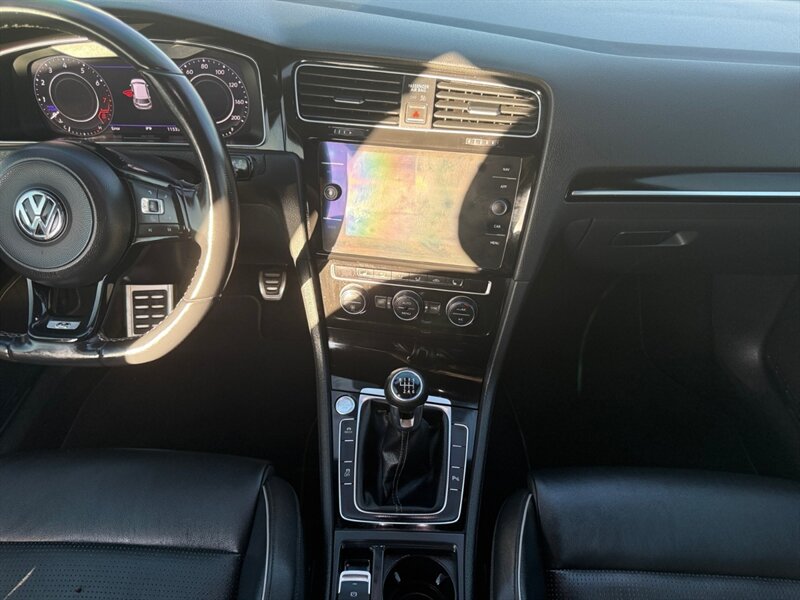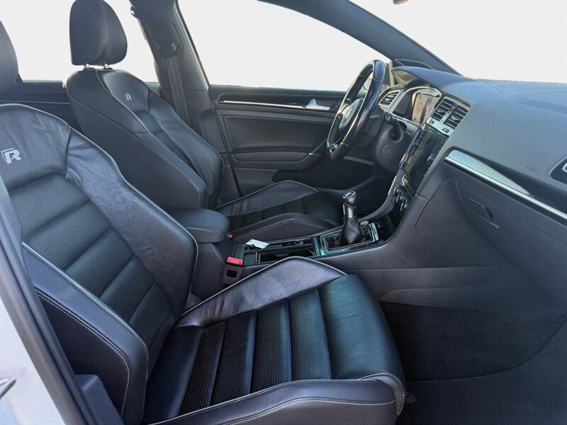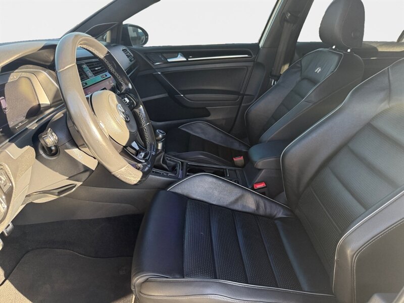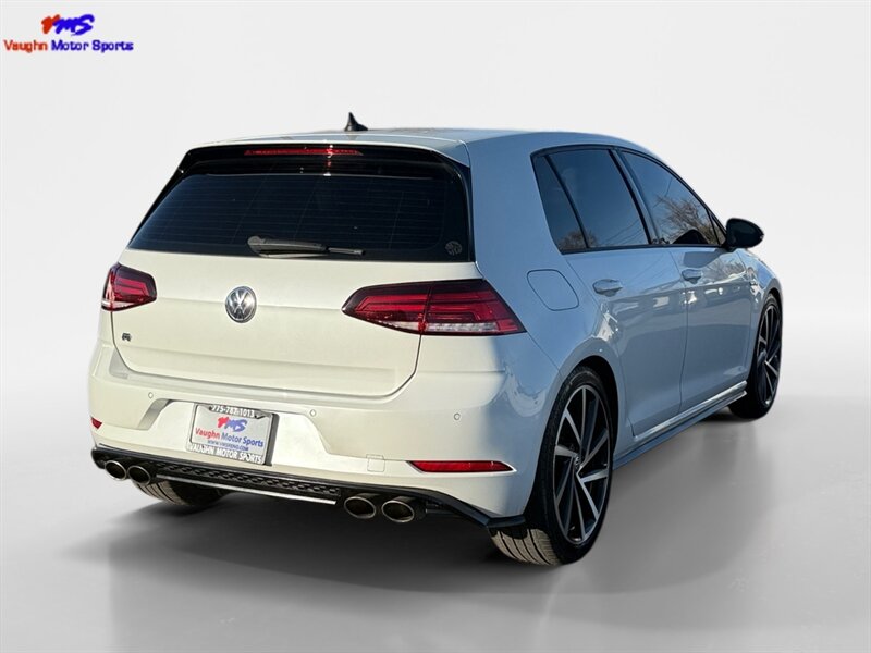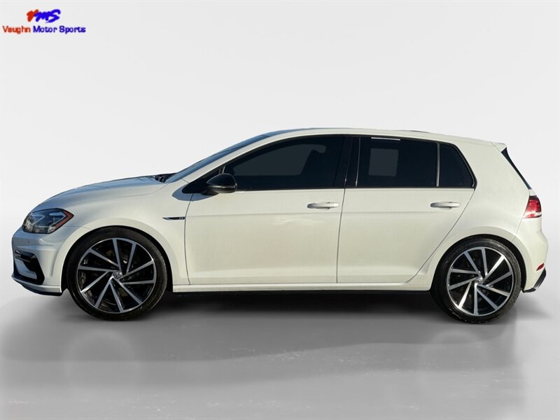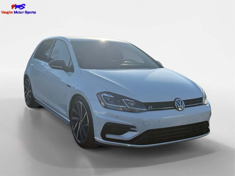 2018 Volkswagen Golf R 4Motion in Oryx White Pearl with interior color not specified. Powered by a 2.0L turbocharged inline-4 producing 292 hp and 280 lb-ft, mated to Volkswagen’s 4Motion all-wheel-drive system; EPA-rated 21 MPG city / 29 MPG highway. Factory-standard equipment includes performance-tuned suspension and electronic traction/differential control, LED headlights and taillights, alloy wheels, heated front sport seats, power-adjustable driver seating, dual-zone automatic climate control, leather-wrapped steering wheel, keyless access with push-button start, touchscreen infotainment with Bluetooth and smartphone integration, rearview camera and parking sensors. Standard safety features include ABS, stability and traction control, multiple airbags and tire pressure monitoring. Vehicle is in excellent overall condition and has a clean CARFAX.