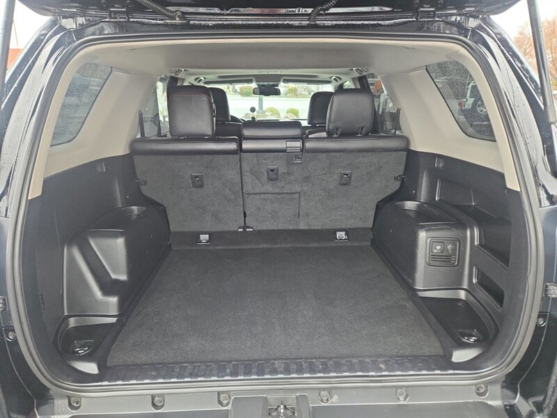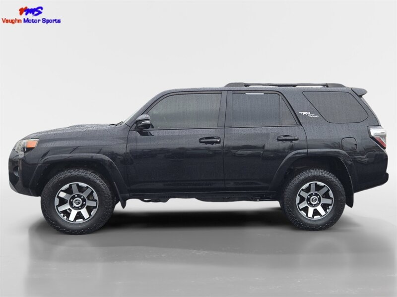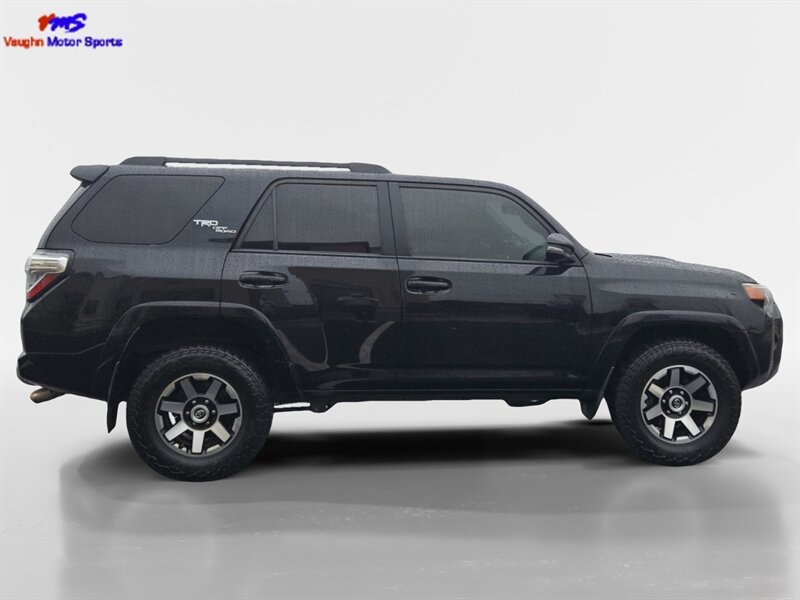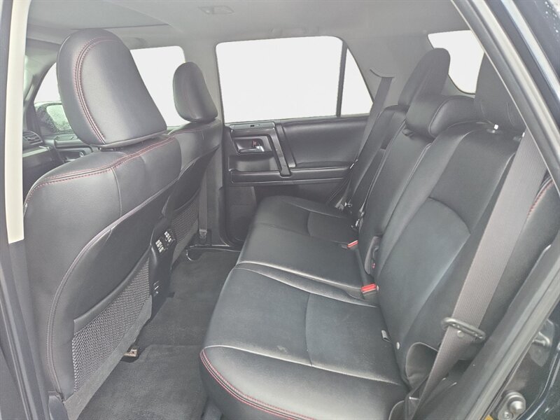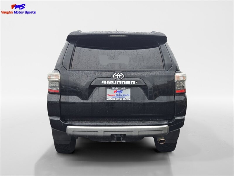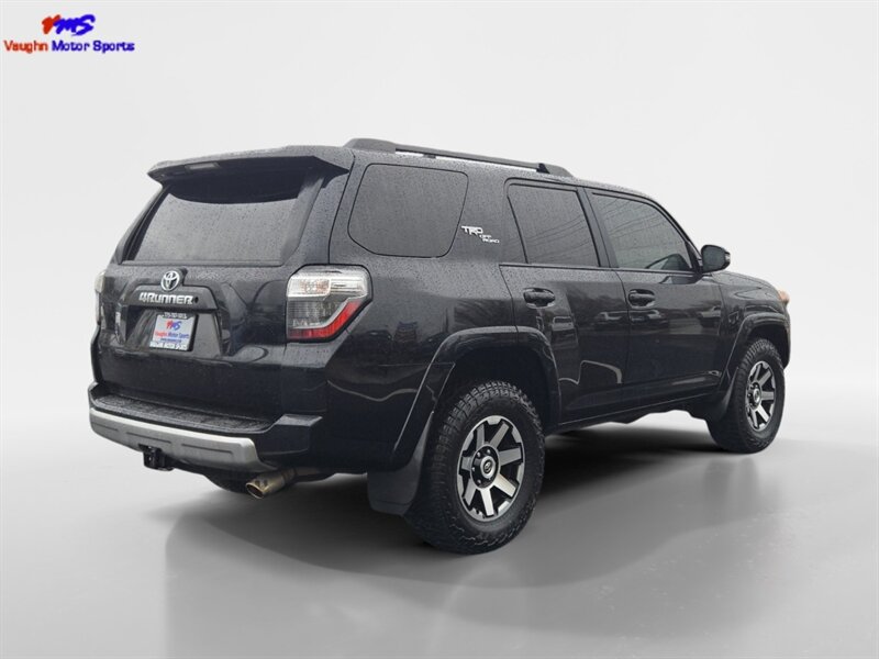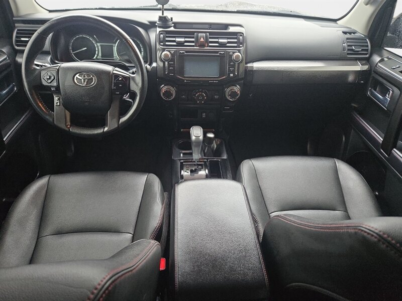 2019 Toyota 4Runner TRD Off-Road Premium in Midnight Black Metallic with Black leather interior. Powered by a 4.0L V6 producing 270 hp and 278 lb-ft of torque mated to a 5-speed automatic; EPA-rated at 17 MPG city and 20 MPG highway. Factory equipment includes part-time 4WD with locking rear differential, Multi-Terrain Select and CRAWL control, TRD-tuned suspension with Bilstein shocks, 17-inch alloy wheels, roof rails and power rear window; leather-trimmed heated front seats, power driver seat, dual-zone automatic climate control, Entune infotainment with Bluetooth and a rearview camera; and standard safety features such as ABS, stability and traction control and multiple airbags. Vehicle is in excellent overall condition with a clean CARFAX.