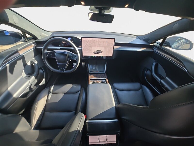 Midnight Silver Metallic 2022 Tesla Model S — a 670 hp electric showstopper in excellent overall condition with a clean CARFAX and an asking price below Kelley Blue Book. Factory-standard goodies include Tesla’s electric 670 hp powertrain with instant torque and regenerative one-pedal driving, standard Autopilot (traffic-aware cruise control + lane-keeping), the massive 17" cinematic touchscreen with navigation, Wi-Fi, streaming and Bluetooth, premium audio, heated front and rear seats plus heated steering wheel, panoramic all-glass roof, phone-key/keycard entry, tri-zone climate control, power-adjustable seats with memory, USB ports and wireless charging, and over-the-air software updates to keep it smarter than most drivers. Interior color/details available on request — pristine and ready to turn heads.